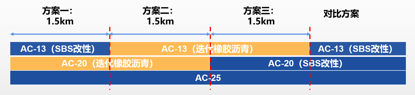 通过在广西平容高速公路进行对比性试验(试验段全长4.5公里),采用“单中面层”、“单上面层”、“上中面双层”三种方案与“SBS改性面层(暨国内典型结构)”进行对比试验。